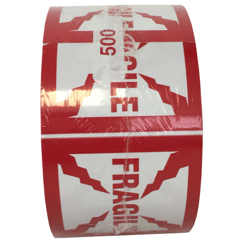 2" wide by 2" high Fragile label. Paper with permanent pressure sensitive adhesive backing. Meets military standard. 500 labels per roll.