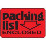 2" x 3" Fluorescent Red Packing List Enclosed Label. 500/Roll