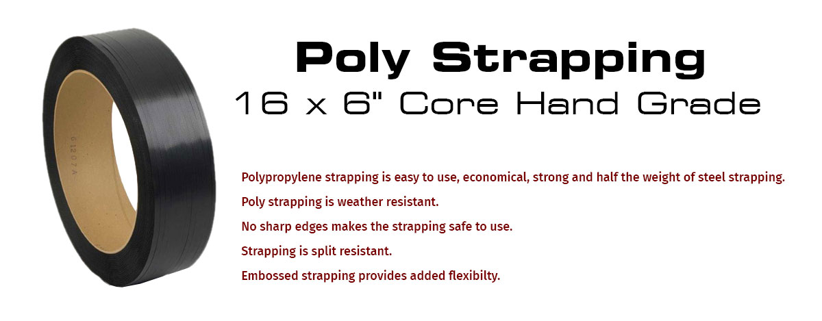 1/2" x 7200' x .022 Thickness. 450 lb. Break Strength. Black Polypropylene Strapping