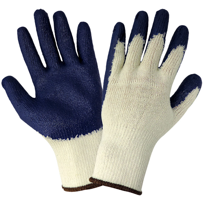 Economy grade blue latex on medium weight string knit glove. Commonly use by contractors. Incredible comfort and dexterity, economical with excellent grip. Applications: general purpose. Excellent tactile dexterity and sensitivity. String shell for comfort. Latex coating provides superior grip. Size: large.