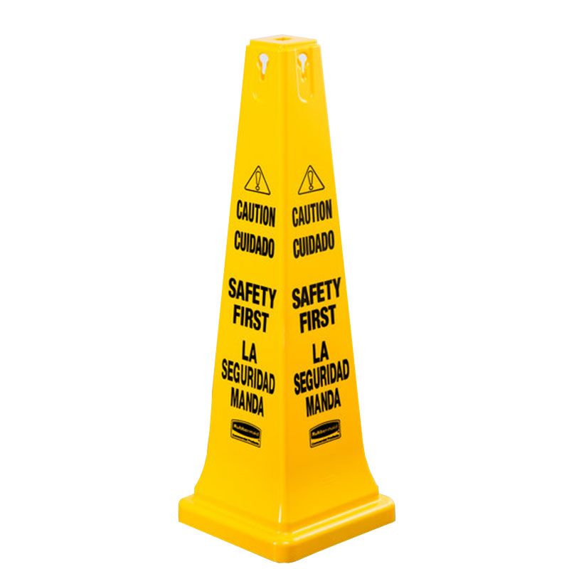 Message is printed in English and Spanish on all four sides of bright yellow cone.