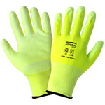 PUG118 Samurai Gloves, High Visibility, Tuffalene Brand UHMWPE, PU Dipped, Cut Resistant, ANSI Cut Level A2, Large, 12 Pair/Pkg