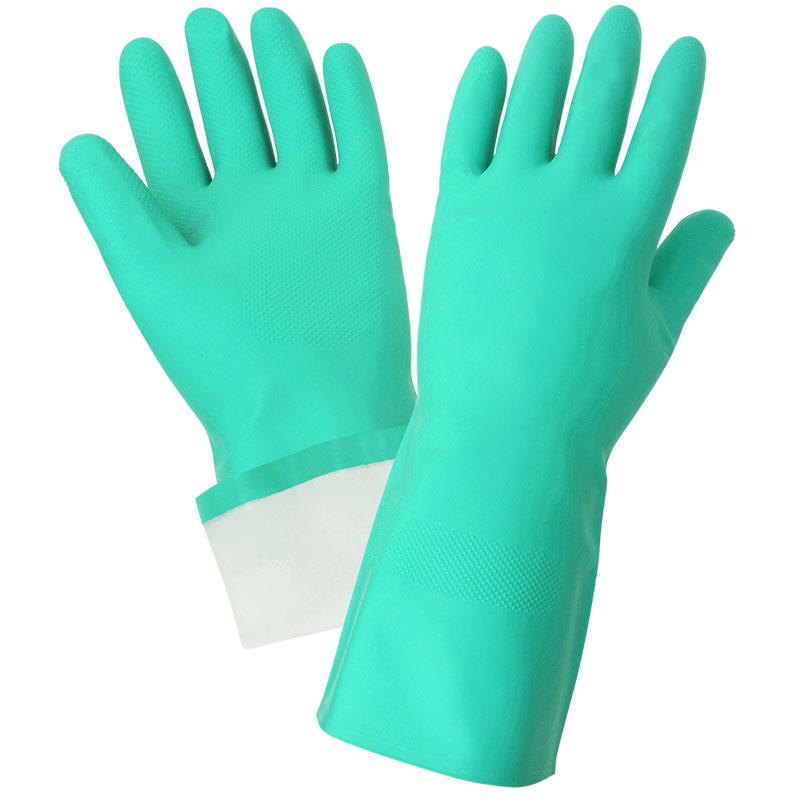 15 mil unsupported nitrile gloves are 13" long and flock lined.