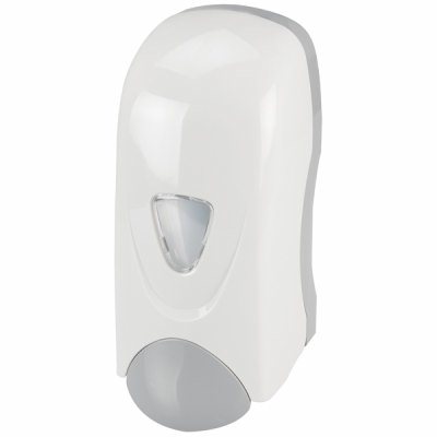 White and gray, sleek, smooth modern design. Accepts most bulk foaming soap.